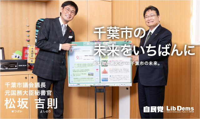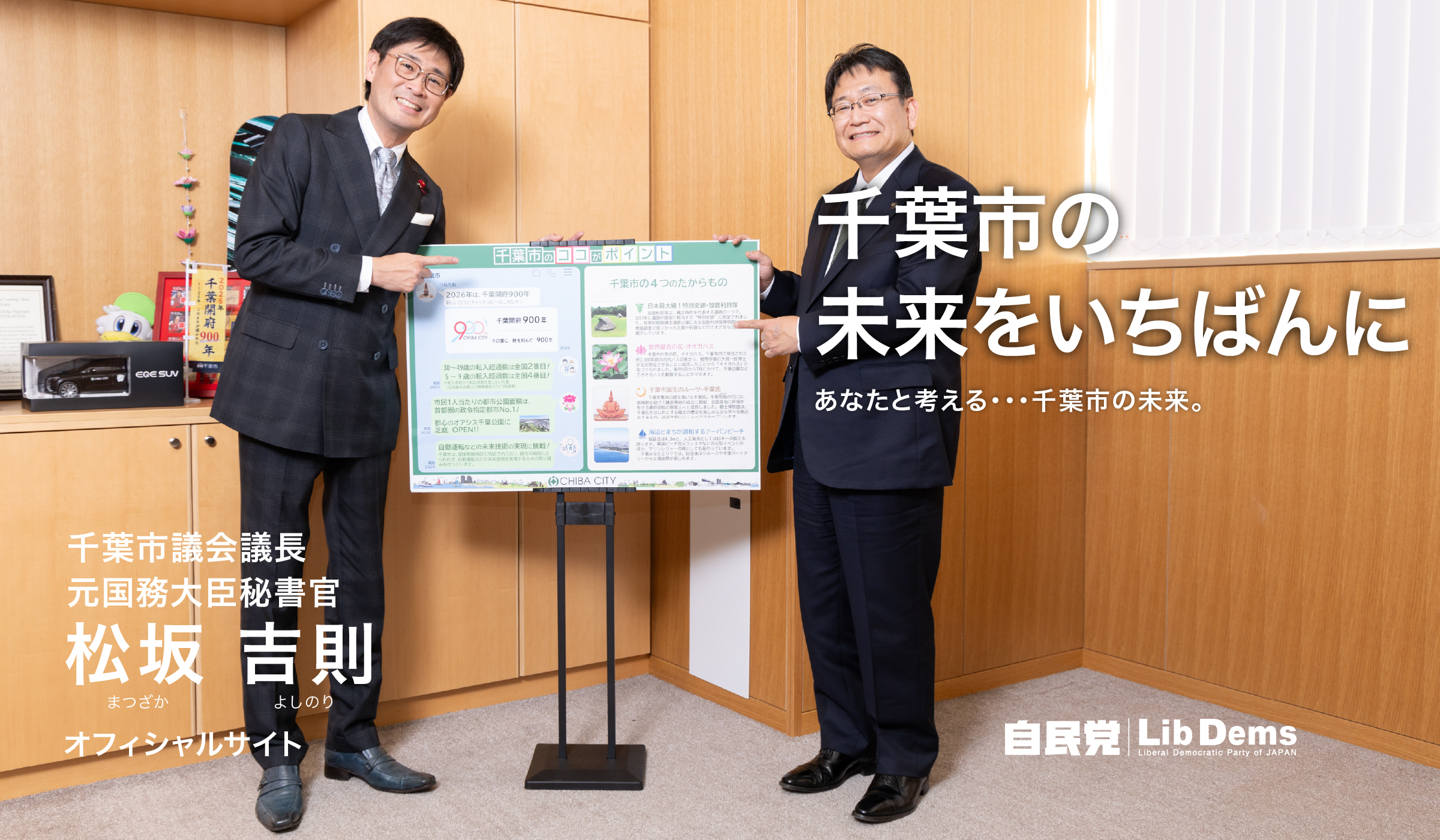 令和7年第2回定例会にて、第80代千葉市議会議長に就任いたしました松坂吉則です。私は、これまで市議会において、議会運営委員会委員長、総務委員会委員長、教育未来委員会委員長、都市建設委員会委員長、防災・危機対策調査特別委員会委員長等を歴任してまいりました。